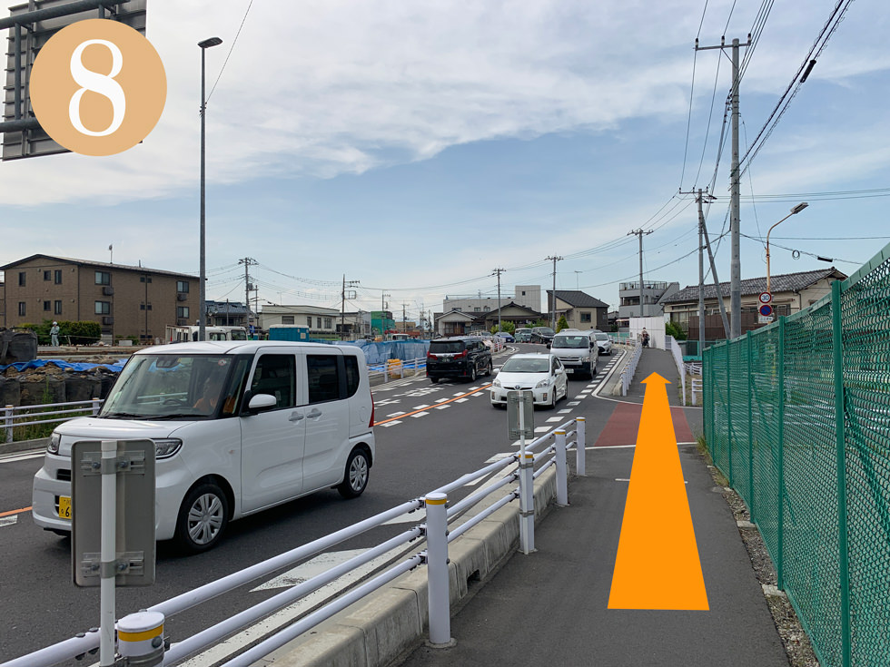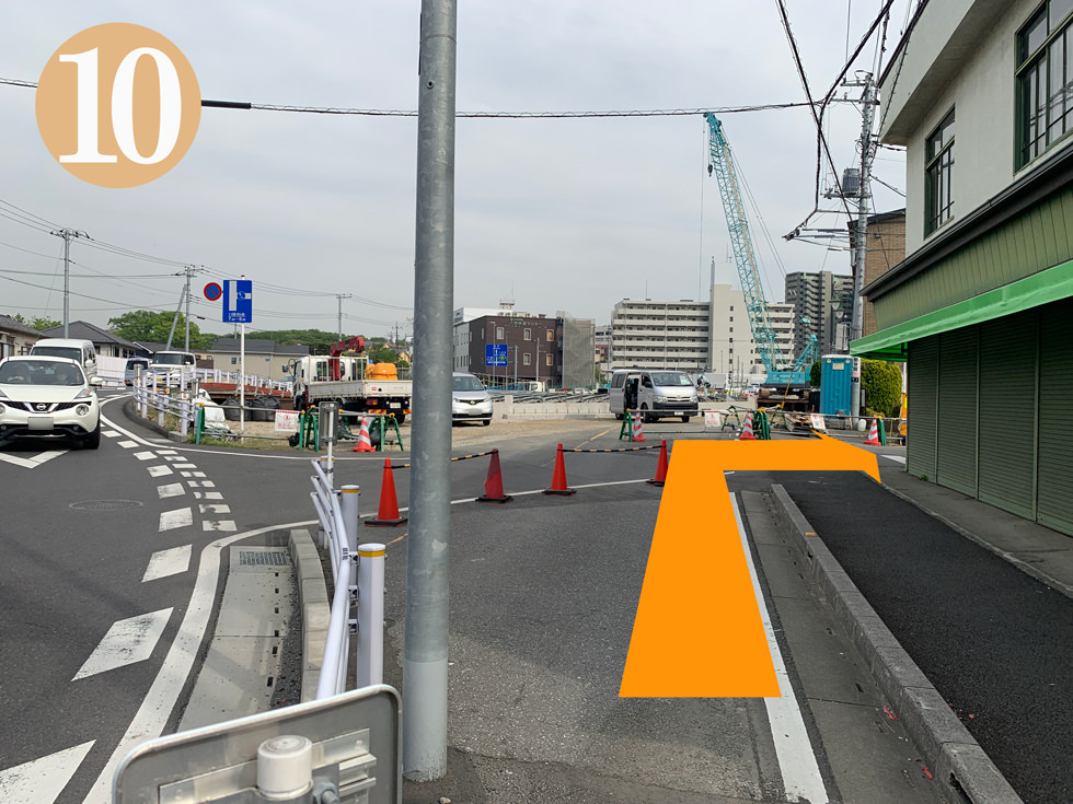 橋の工事をしている手前を右折